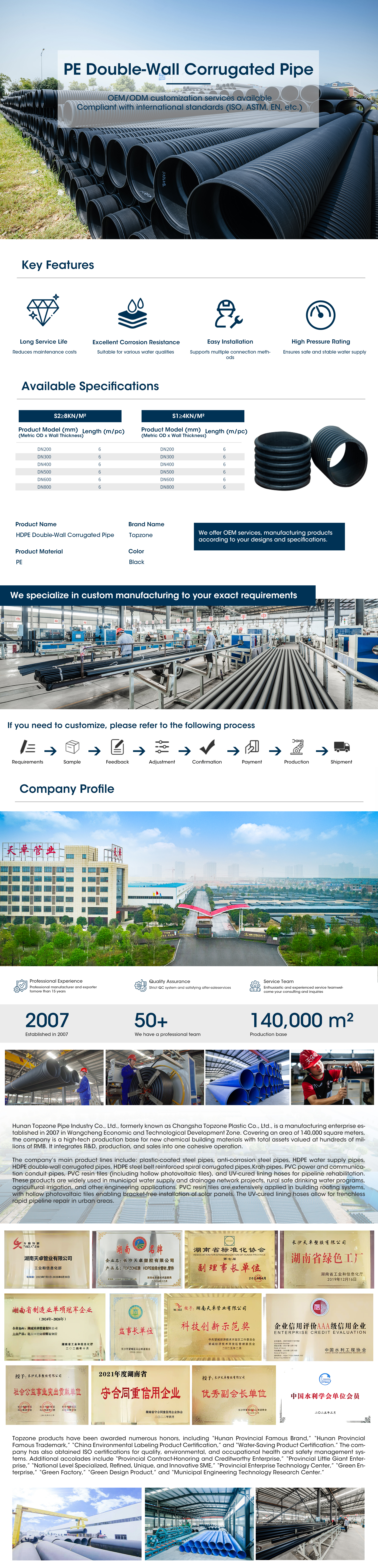 PE Double-Wall Corrugated Pipe Professional Manufacturer OEM/ODM